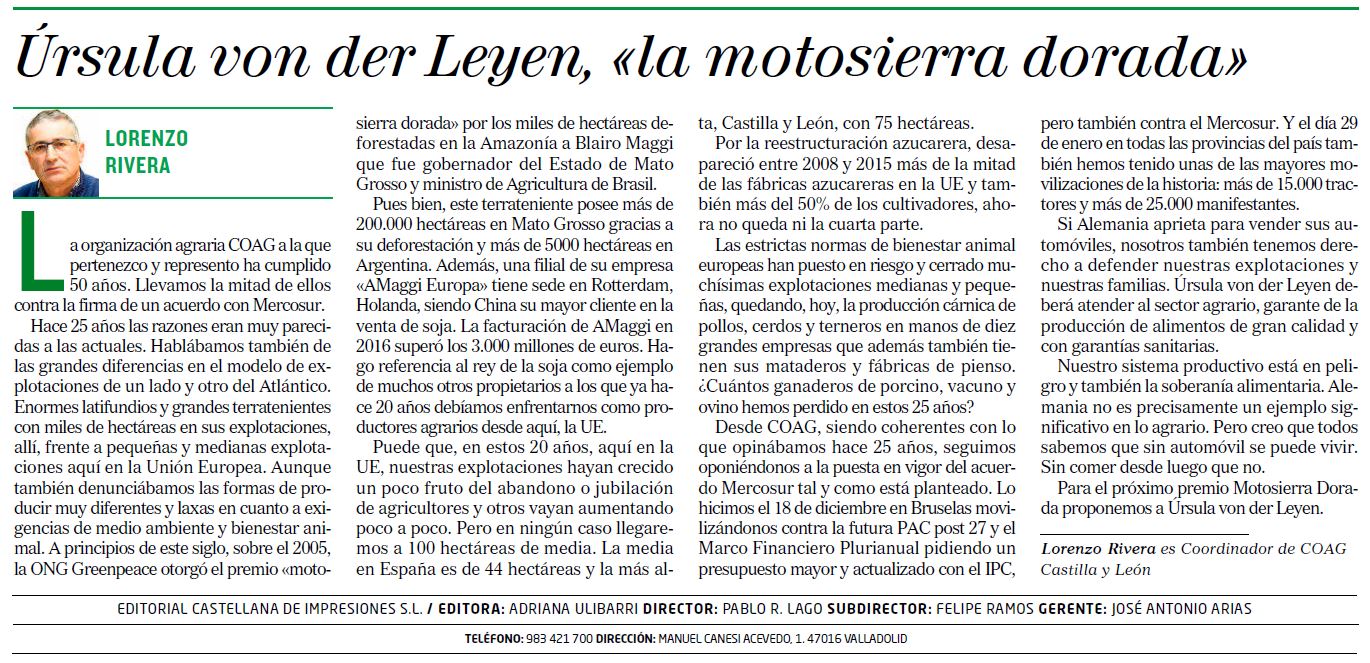 Publicación del artículo en «Mundo Agrario», suplemento de El Mundo de Castilla y León, del lunes 02 de febrero de 2026: