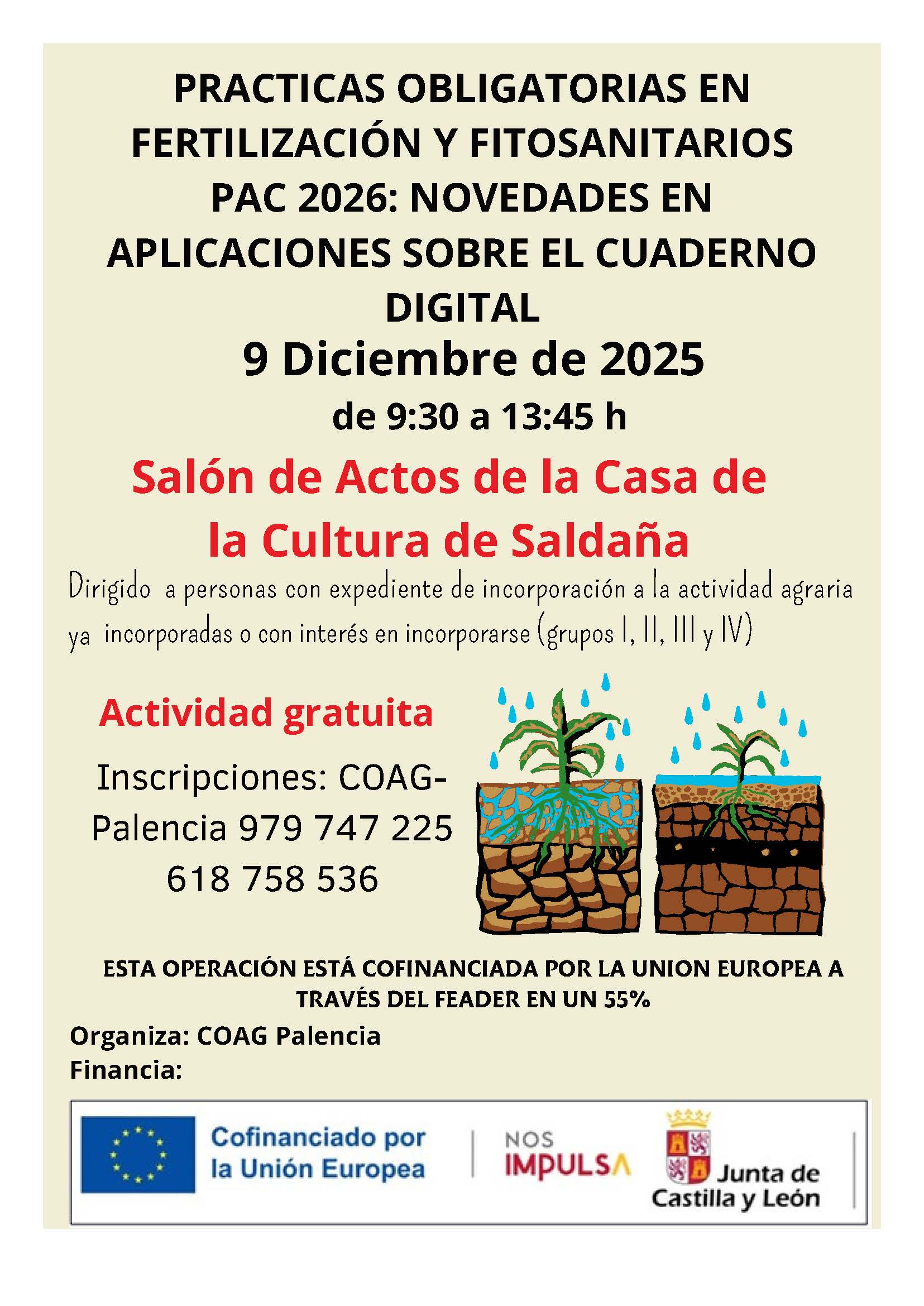 COAG PALENCIA: Prácticas obligatorias en fertilización y fitosanitarios. PAC 2026: Novedades en aplicaciones sobre el cuaderno digital.