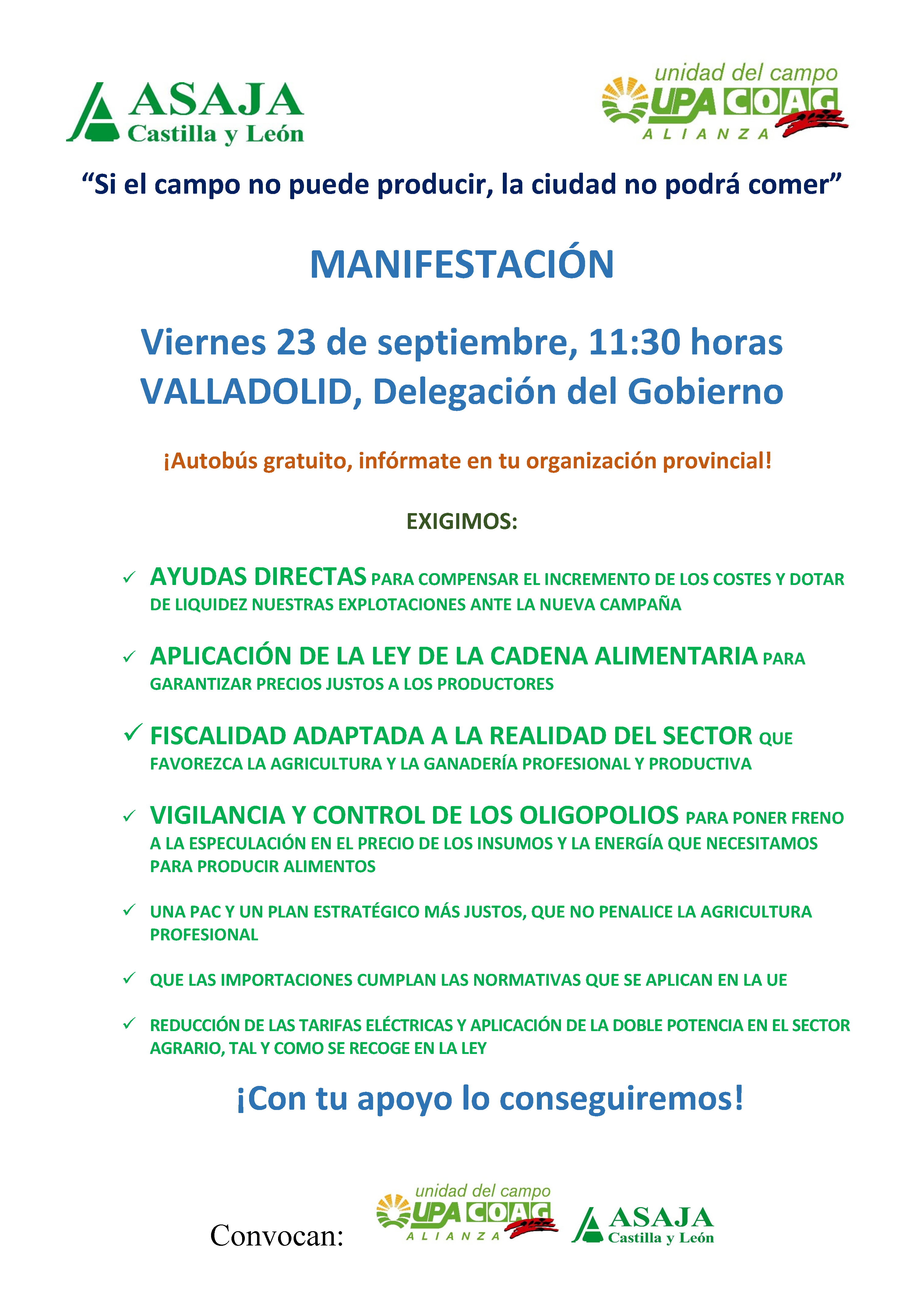 Manifestación en Valladolid el viernes 23 de septiembre ante los incrementos de producción agrarios